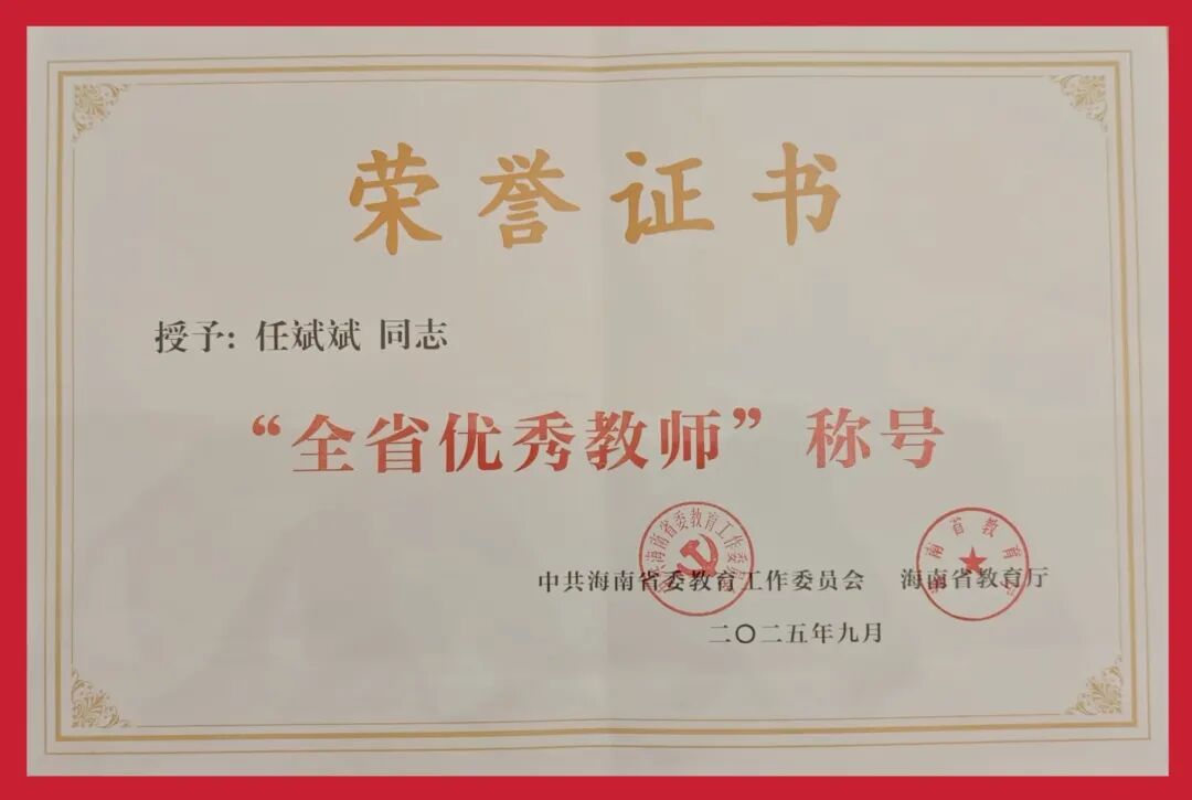 2025年9月2日上午,海南省教育厅召开海南省庆祝第41个教师节暨加快教育强省建设会议,会议表彰了全省优秀教师和优秀教育工作者,三亚航院机电工程学院任斌斌老师荣获“全省优秀教师”称号!杏林春雨,传道授业解惑躬耕学海,指引人生方向在第41个教师节即将来临之际,让我们一同祝贺任斌斌老师,也致敬三亚航院所有润物无声的教育工作者。